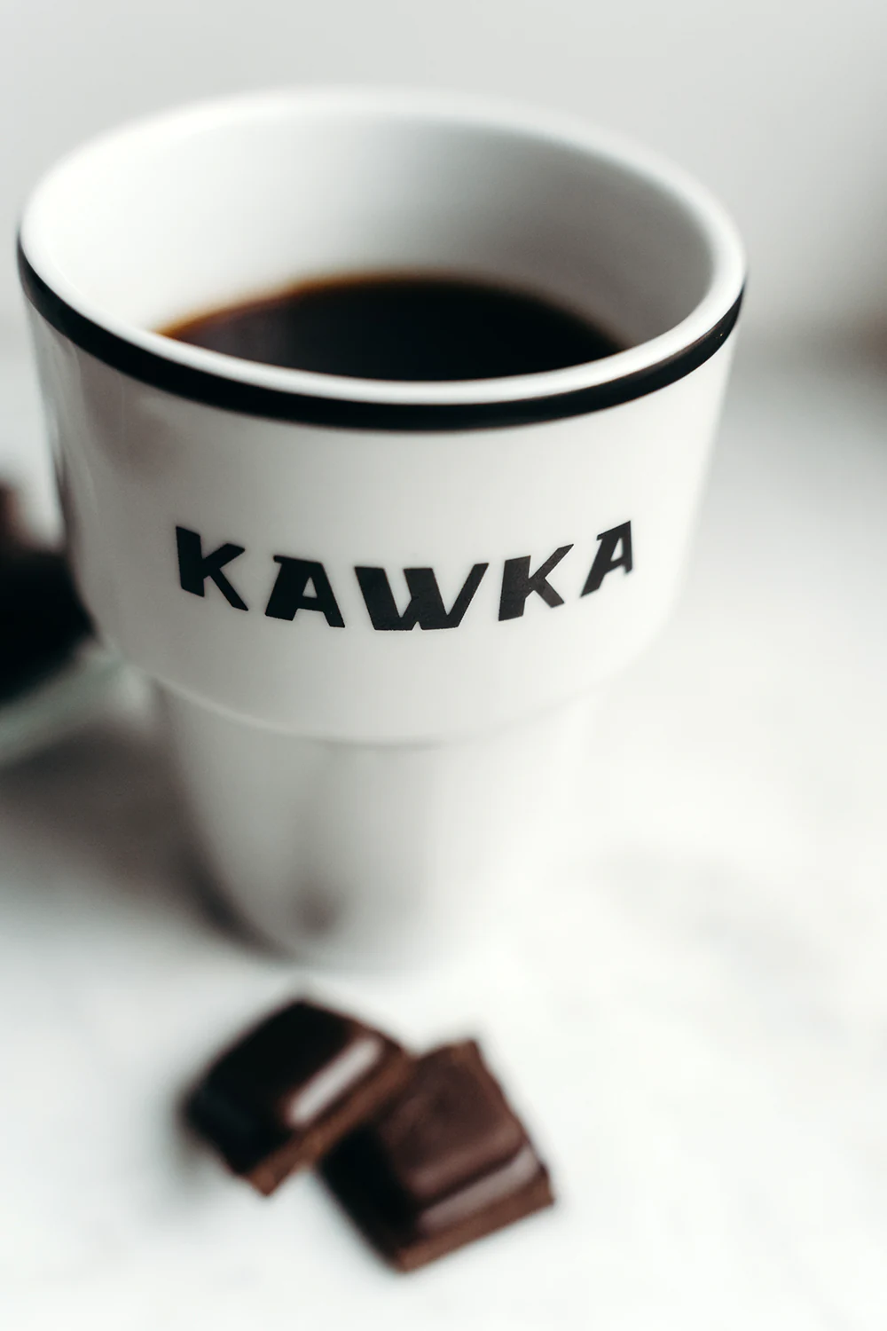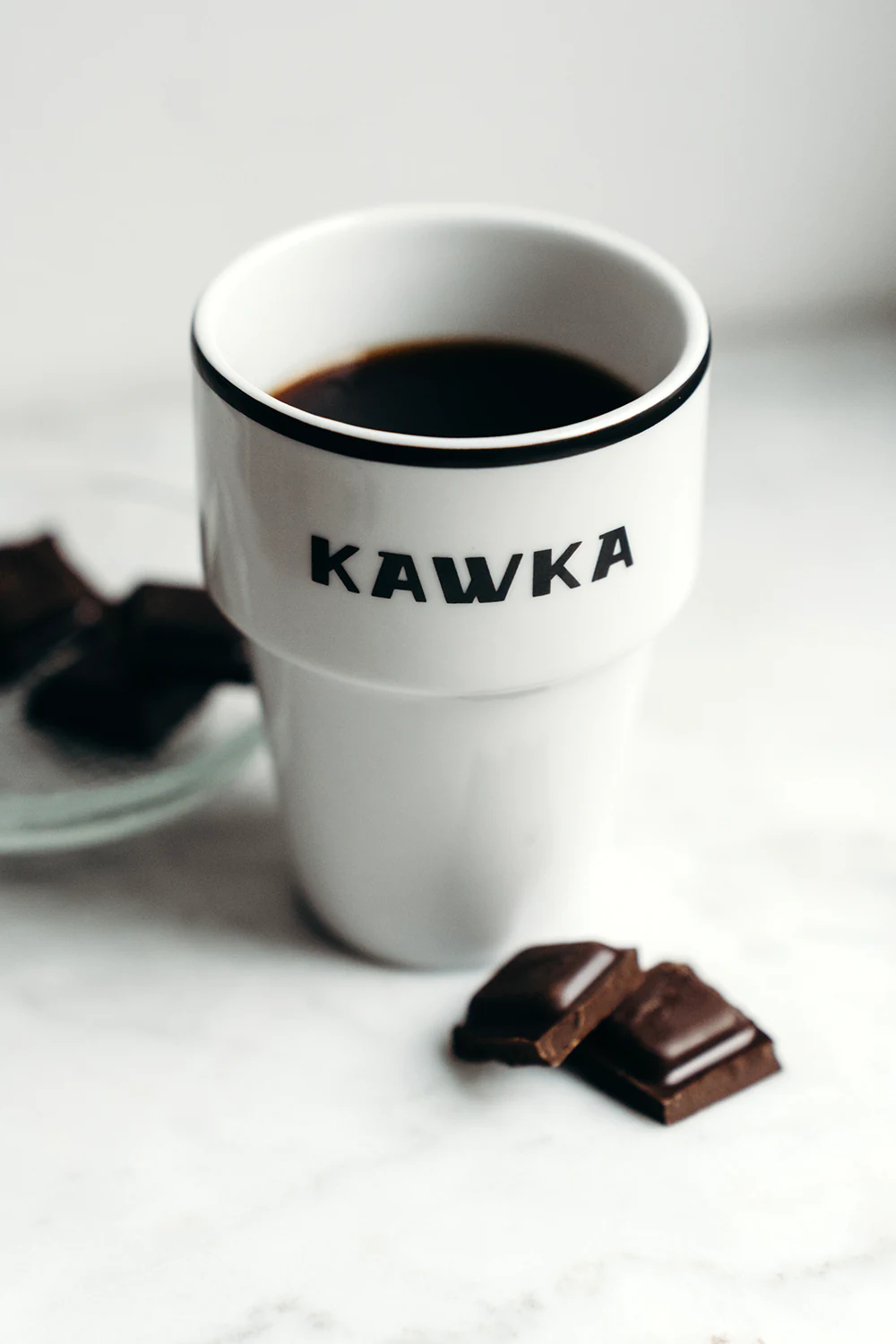 - czarny nadruk KAWKA od frontu, z tyłu ptasior